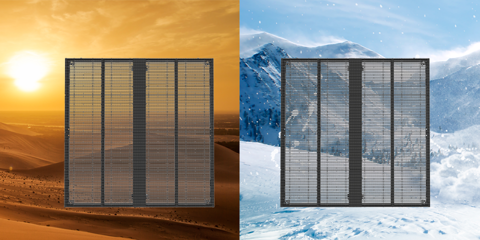 通过在透明屏模组上加遮光面罩,可做不透风不透光的常规户外屏使用,通过在箱体背后加挡光板,可起到通风避光的作用,屏体的功能由您决定